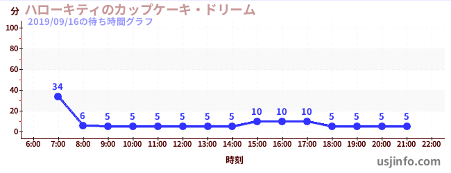 • ハローキティのカップケーキ・ドリーム$B$N(B2019年09月16日の待ち時間