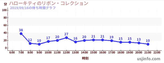 • ハローキティのリボン・コレクション$B$N(B2019年09月16日の待ち時間