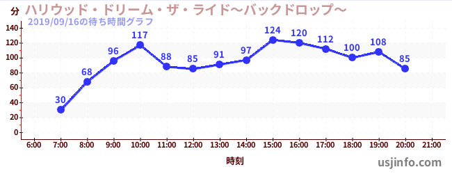 • ハリウッド・ドリーム・ザ・ライド〜バックドロップ〜$B$N(B2019年09月16日の待ち時間