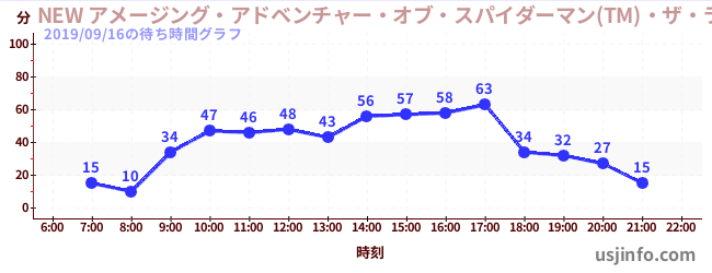 • NEW アメージング・アドベンチャー・オブ・スパイダーマン(TM)・ザ・ライド 4K3D$B$N(B2019年09月16日の待ち時間