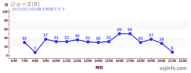 • ジョーズ(R)$B$N(B2019年09月16日の待ち時間