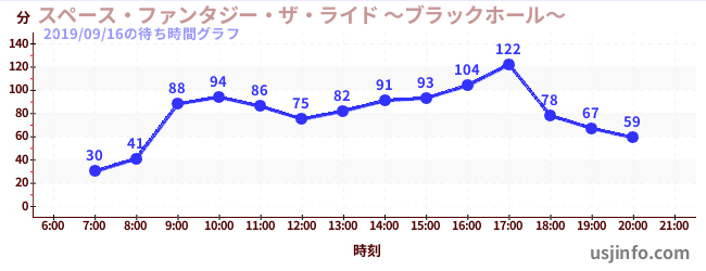 • スペース・ファンタジー・ザ・ライド ~ブラックホール~$B$N(B2019年09月16日の待ち時間