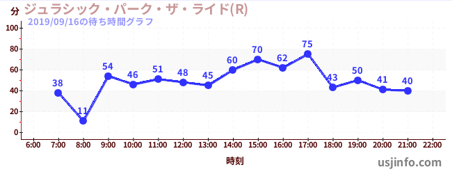 • ジュラシック・パーク・ザ・ライド(R)$B$N(B2019年09月16日の待ち時間