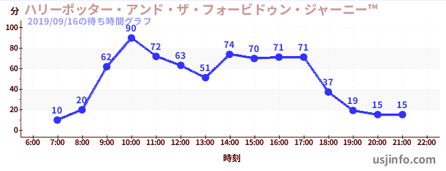 • ハリーポッター・アンド・ザ・フォービドゥン・ジャーニー™$B$N(B2019年09月16日の待ち時間