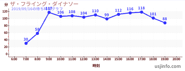 • ザ・フライング・ダイナソー$B$N(B2019年09月16日の待ち時間