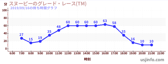 • スヌーピーのグレード・レース(TM)$B$N(B2019年09月16日の待ち時間