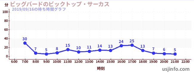 • ビッグバードのビックトップ・サーカス$B$N(B2019年09月16日の待ち時間