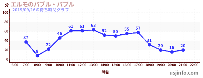• エルモのバブル・バブル$B$N(B2019年09月16日の待ち時間