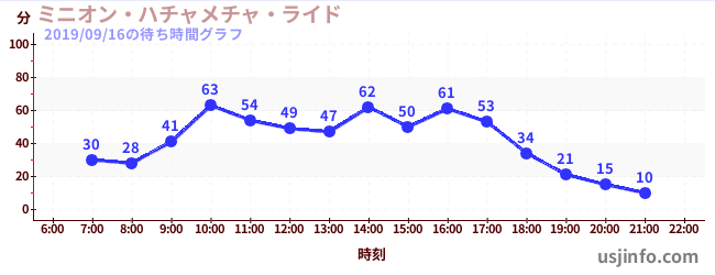 • ミニオン・ハチャメチャ・ライド$B$N(B2019年09月16日の待ち時間