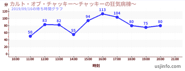 • カルト・オブ・チャッキー~チャッキーの狂気病棟~$B$N(B2019年09月16日の待ち時間