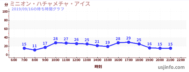 • ミニオン・ハチャメチャ・アイス$B$N(B2019年09月16日の待ち時間