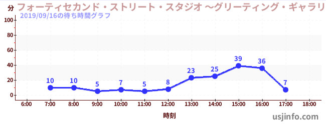• フォーティセカンド・ストリート・スタジオ ~グリーティング・ギャラリー~ ピーナッツの仲間たち$B$N(B2019年09月16日の待ち時間