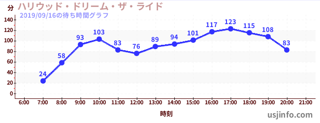• ハリウッド・ドリーム・ザ・ライド$B$N(B2019年09月16日の待ち時間