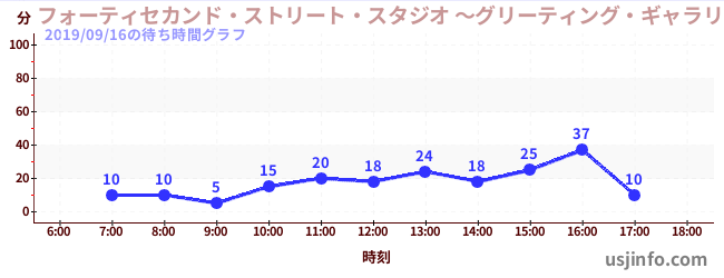 • フォーティセカンド・ストリート・スタジオ ~グリーティング・ギャラリー~ ミニオン$B$N(B2019年09月16日の待ち時間