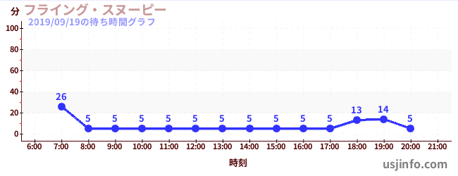• フライング・スヌーピー$B$N(B2019年09月19日の待ち時間