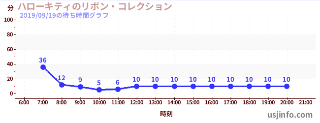 • ハローキティのリボン・コレクション$B$N(B2019年09月19日の待ち時間