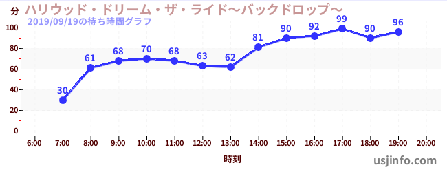 • ハリウッド・ドリーム・ザ・ライド〜バックドロップ〜$B$N(B2019年09月19日の待ち時間