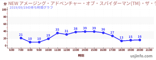 • NEW アメージング・アドベンチャー・オブ・スパイダーマン(TM)・ザ・ライド 4K3D$B$N(B2019年09月19日の待ち時間