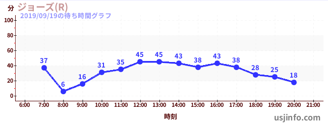 • ジョーズ(R)$B$N(B2019年09月19日の待ち時間