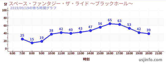 • スペース・ファンタジー・ザ・ライド ~ブラックホール~$B$N(B2019年09月19日の待ち時間