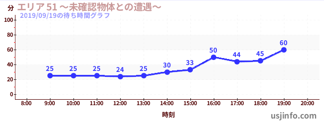 • エリア 51 ~未確認物体との遭遇~$B$N(B2019年09月19日の待ち時間