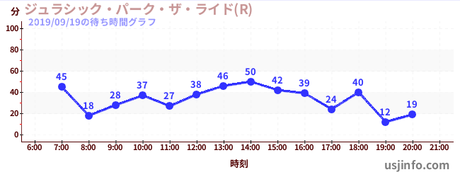 • ジュラシック・パーク・ザ・ライド(R)$B$N(B2019年09月19日の待ち時間