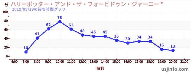 • ハリーポッター・アンド・ザ・フォービドゥン・ジャーニー™$B$N(B2019年09月19日の待ち時間