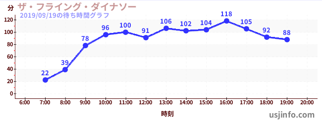 • ザ・フライング・ダイナソー$B$N(B2019年09月19日の待ち時間