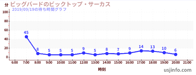 • ビッグバードのビックトップ・サーカス$B$N(B2019年09月19日の待ち時間