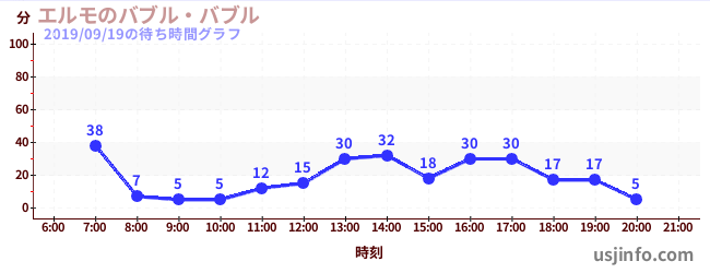 • エルモのバブル・バブル$B$N(B2019年09月19日の待ち時間