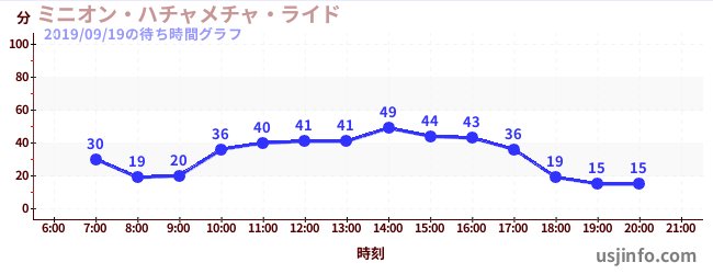 • ミニオン・ハチャメチャ・ライド$B$N(B2019年09月19日の待ち時間
