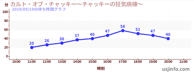 • カルト・オブ・チャッキー~チャッキーの狂気病棟~$B$N(B2019年09月19日の待ち時間