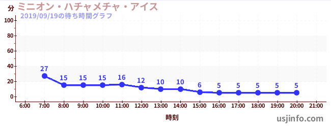 • ミニオン・ハチャメチャ・アイス$B$N(B2019年09月19日の待ち時間