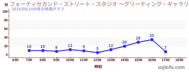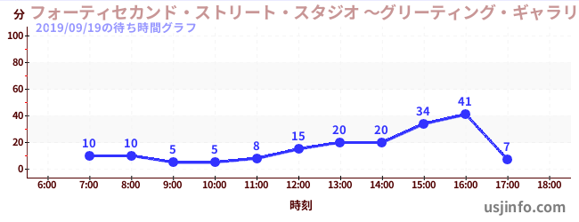 • フォーティセカンド・ストリート・スタジオ ~グリーティング・ギャラリー~ ミニオン$B$N(B2019年09月19日の待ち時間