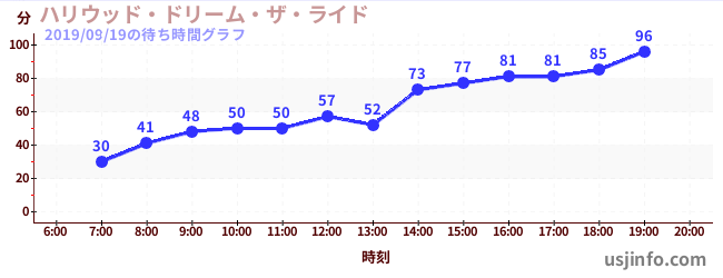 • ハリウッド・ドリーム・ザ・ライド$B$N(B2019年09月19日の待ち時間