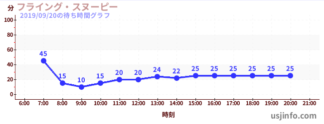 • フライング・スヌーピー$B$N(B2019年09月20日の待ち時間