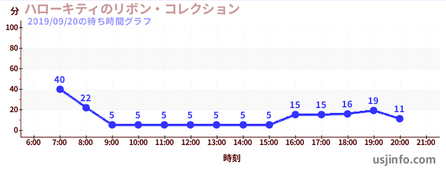 • ハローキティのリボン・コレクション$B$N(B2019年09月20日の待ち時間