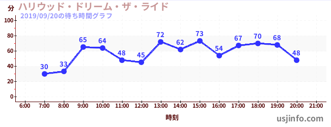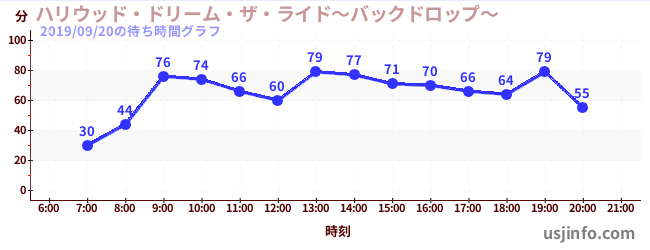 • ハリウッド・ドリーム・ザ・ライド$B$N(B2019年09月20日の待ち時間