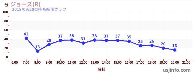 • ジョーズ(R)$B$N(B2019年09月20日の待ち時間