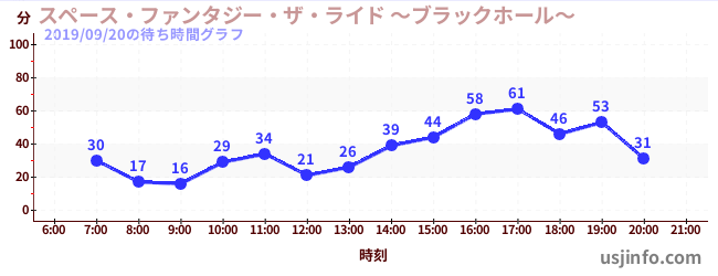 • スペース・ファンタジー・ザ・ライド ~ブラックホール~$B$N(B2019年09月20日の待ち時間