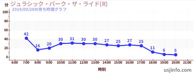 • ジュラシック・パーク・ザ・ライド(R)$B$N(B2019年09月20日の待ち時間