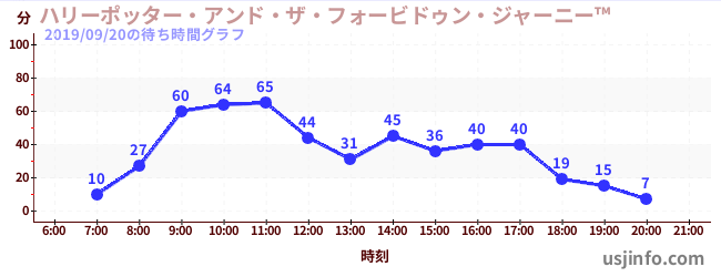 • ハリーポッター・アンド・ザ・フォービドゥン・ジャーニー™$B$N(B2019年09月20日の待ち時間