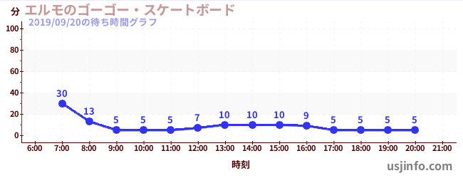 • エルモのゴーゴー・スケートボード$B$N(B2019年09月20日の待ち時間