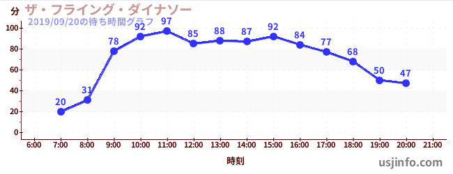 • ザ・フライング・ダイナソー$B$N(B2019年09月20日の待ち時間