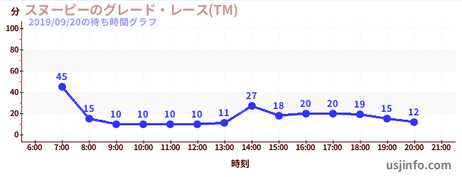 • スヌーピーのグレード・レース(TM)$B$N(B2019年09月20日の待ち時間