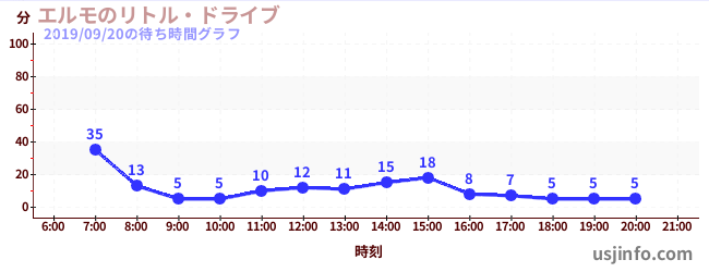 • エルモのリトル・ドライブ$B$N(B2019年09月20日の待ち時間