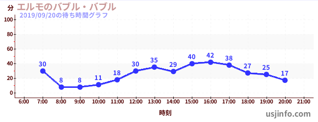 • エルモのバブル・バブル$B$N(B2019年09月20日の待ち時間