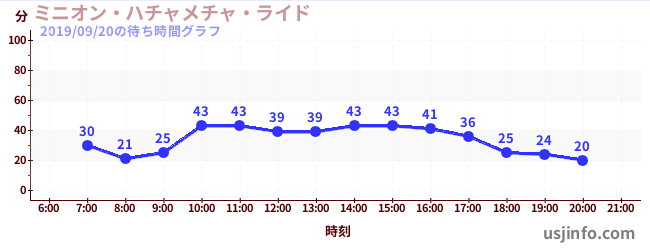 • ミニオン・ハチャメチャ・ライド$B$N(B2019年09月20日の待ち時間