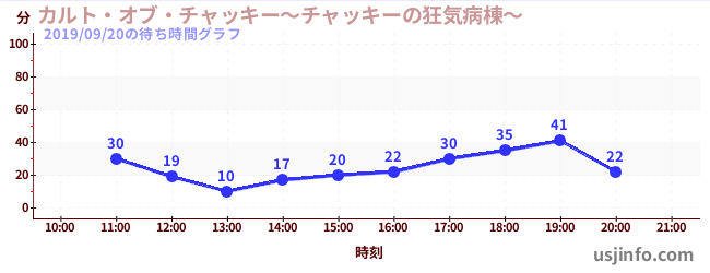 • カルト・オブ・チャッキー~チャッキーの狂気病棟~$B$N(B2019年09月20日の待ち時間