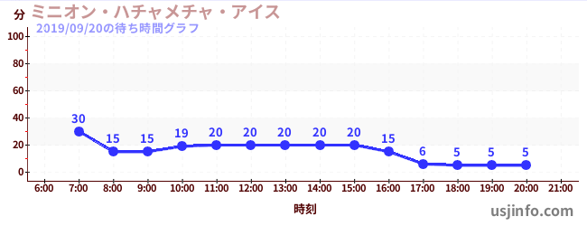 • ミニオン・ハチャメチャ・アイス$B$N(B2019年09月20日の待ち時間